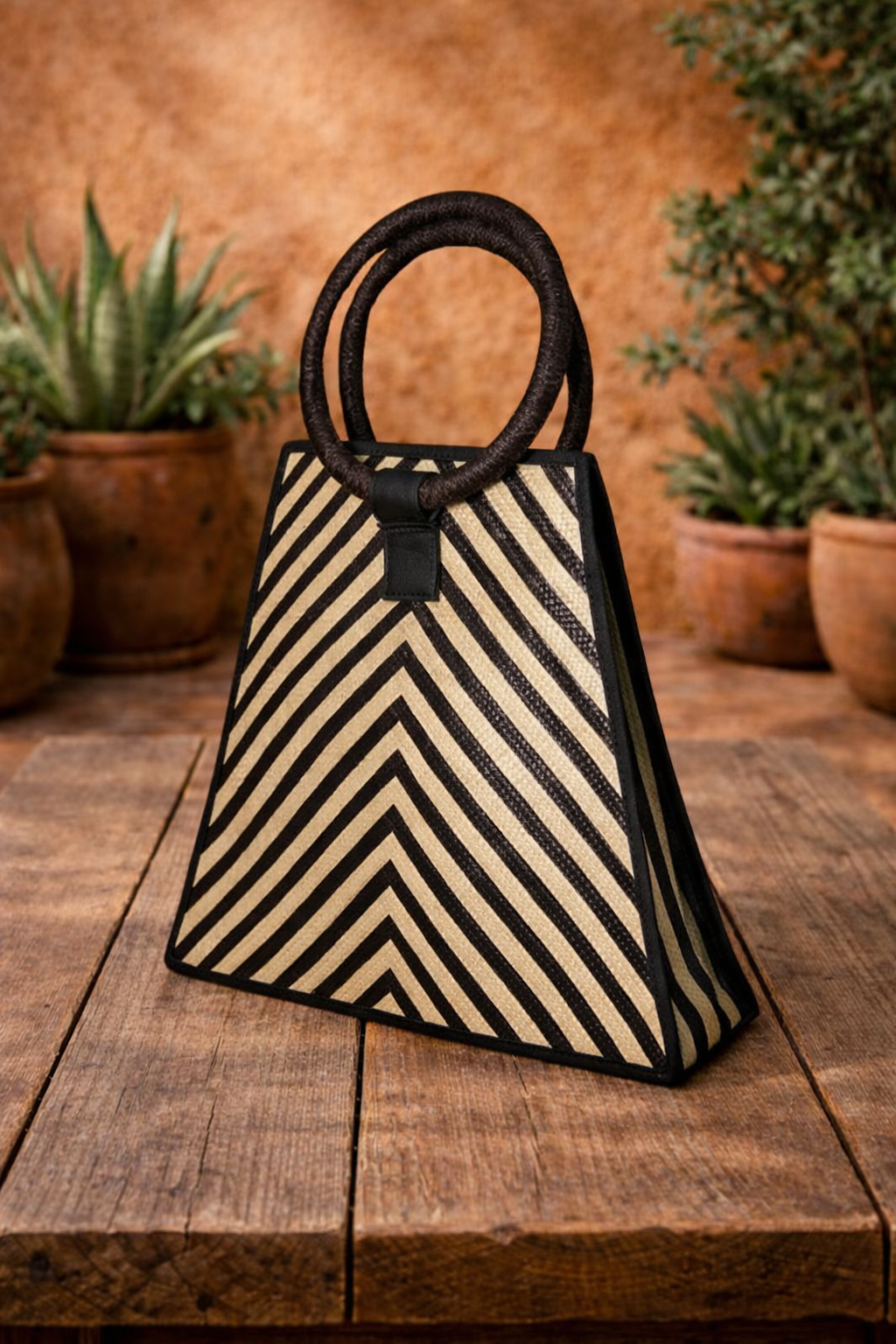 La exclusividad de este bolso reside en la estructura de rayas que se consigue mediante una manipulación experta del tejido de Caña Flecha, creando un patrón visualmente impactante. La silueta de “Pera” es elegante y cómoda. Al elegir este bolso, apoyas directamente la **Calidad Humana** y la **Autenticidad** de nuestras tradiciones, bajo el principio de Comercio Justo.